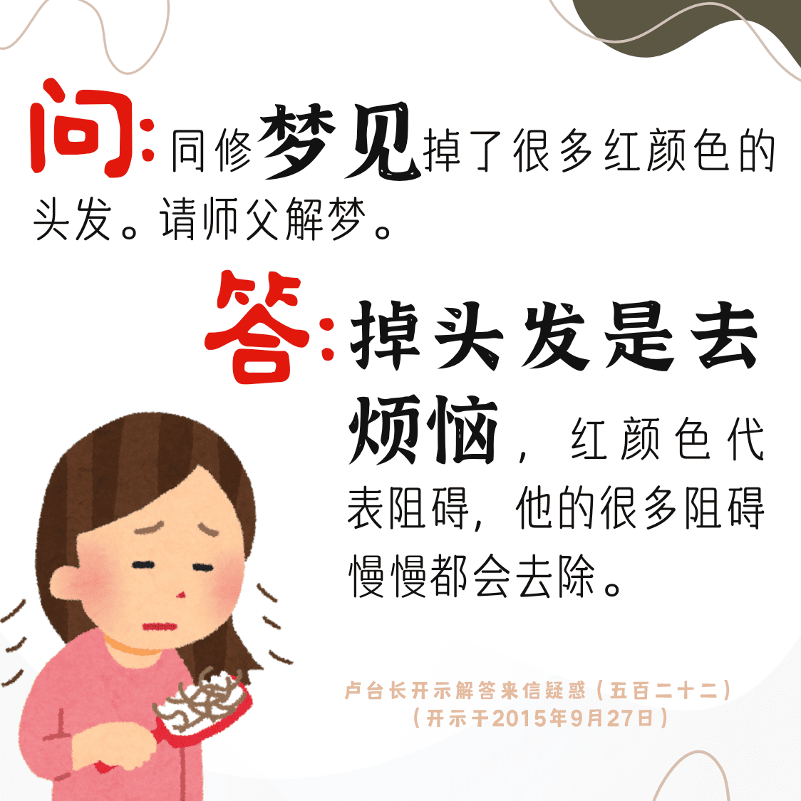 问:梦到我去B师兄家,B师兄要帮我剃胡子,我不好意思,没让她剃。现实中我和B同修都是女的。卢台长答:说明(做梦人)身上有业障。